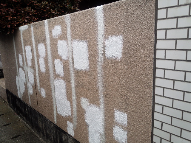 こちらのS様邸の外塀の塗装工事が完了いたしました。まず塗膜脆弱カ所撤去モルタル埋戻しを施工し、