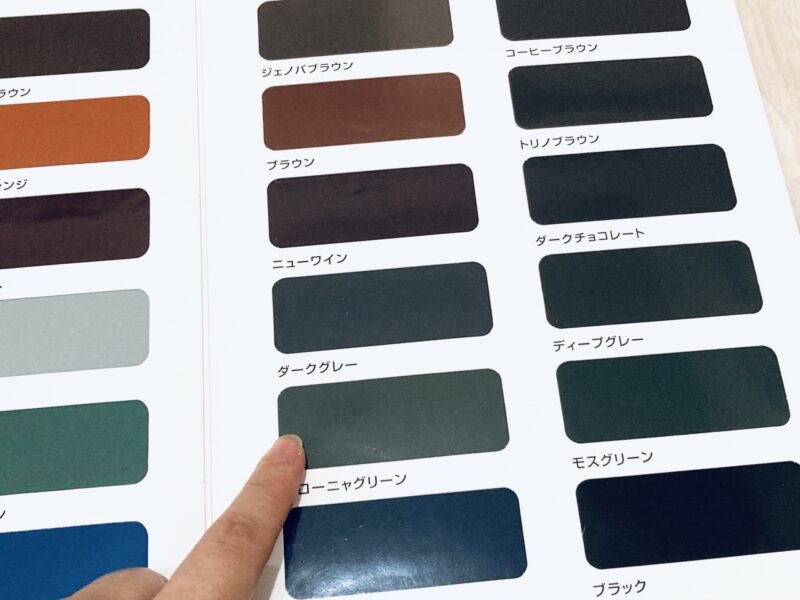 外で色サンプルを確認する室内では光の加減で色が違って見えるため、屋外(朝・昼・夕)で必ずチェック。小さな見本よりワントーン暗めを選ぶと、実際の仕上がりに近づきやすい。